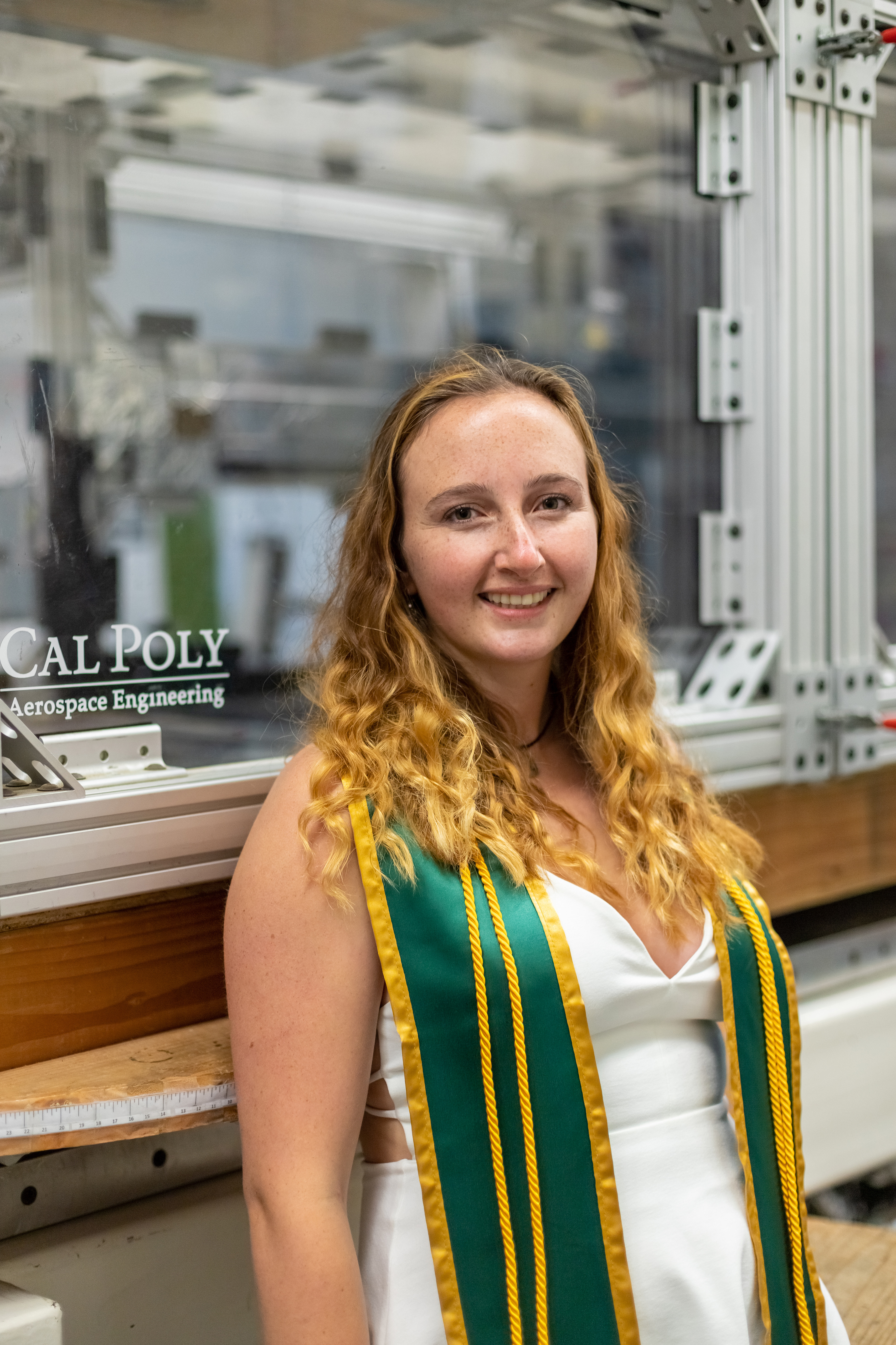 Meghan Aerick, Cal Poly aerospace engineering student, celebrating transitioning into the blended M.S. program.