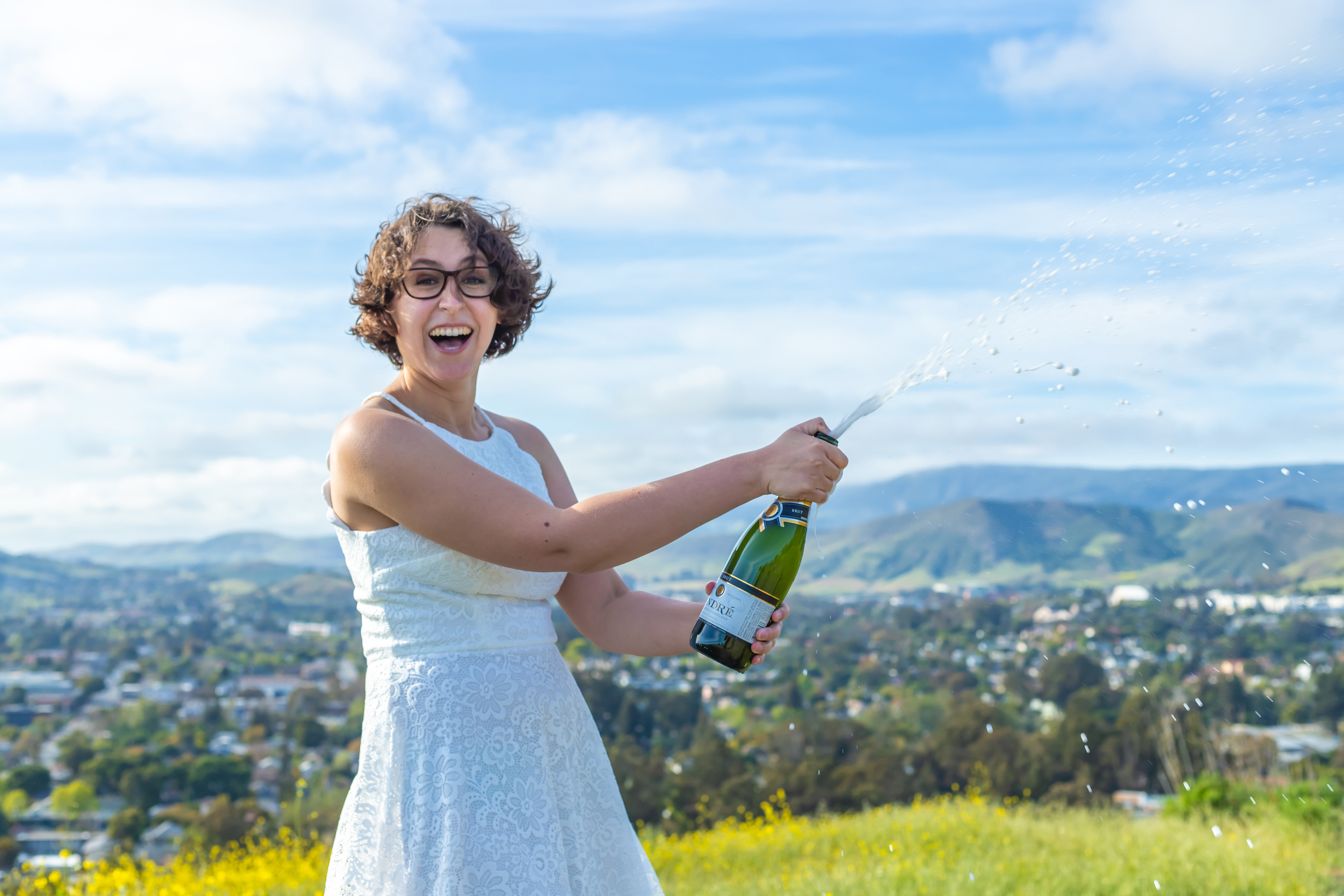 Rachel Keith celebrates her graduation breaking open a bottle of champaign.